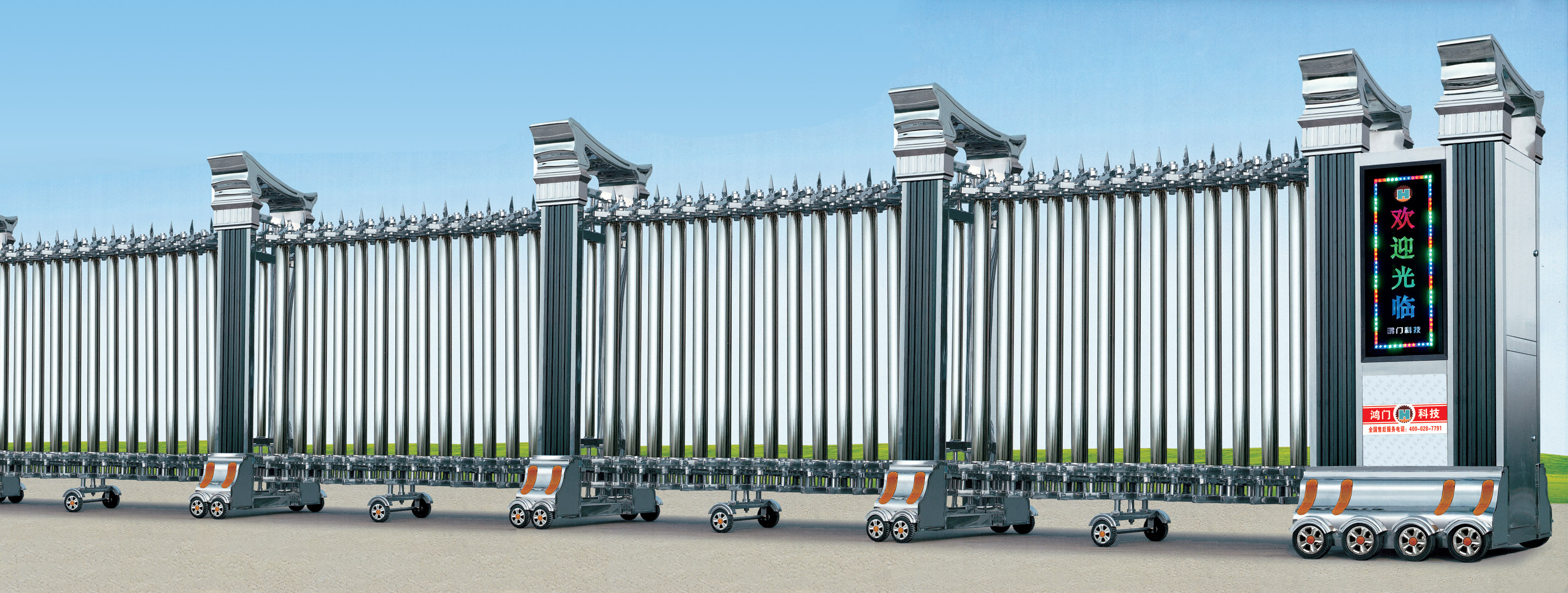 全国500多个省地级市均有我们的销售、售后服务部;是全国致力于建筑自动化设备研发,生产、集成、销售和安装配套产品多元化的高新技术企业,我公司全国市场占有率达38%。公司主要开发生产销售产品有:道闸、停车收费系统、景区票务系统、伸缩门、悬浮门、通道闸、广告道闸、智能监控安防设备、电子围栏、感应门总成、减速带(路障)、岗亭、旗杆、电动车库门、防盗门、电动铁艺门、各种锌钢喷塑围栏栏杆和开发集成各种建筑智能化系统等。