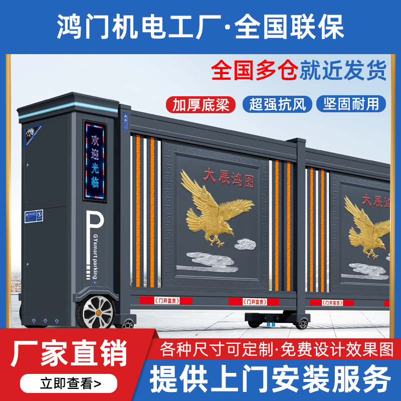 贵州电动门伸缩门要多少钱一米,鸿门智能化自动伸缩门特点优点